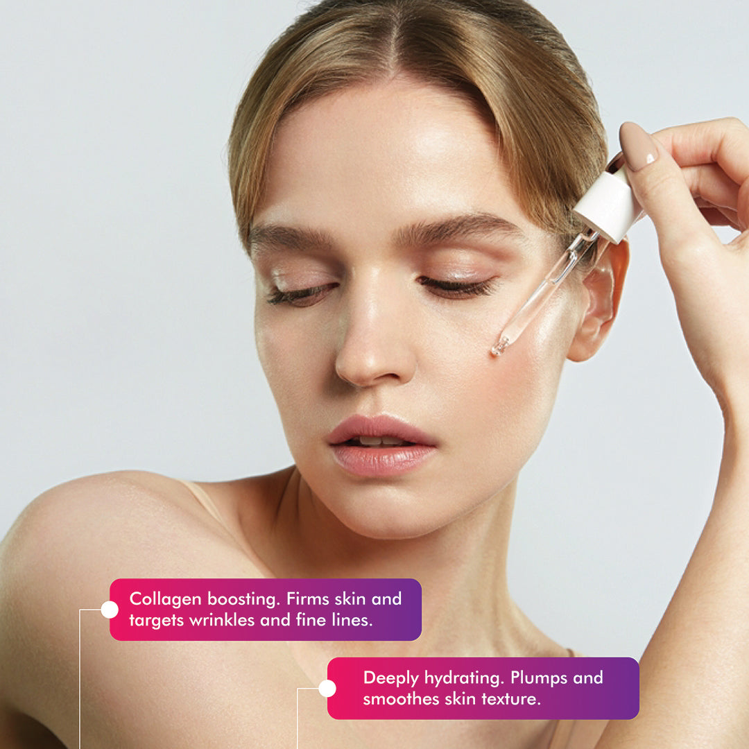 - Boosts collagen & elastin production for improved firmness and elasticity