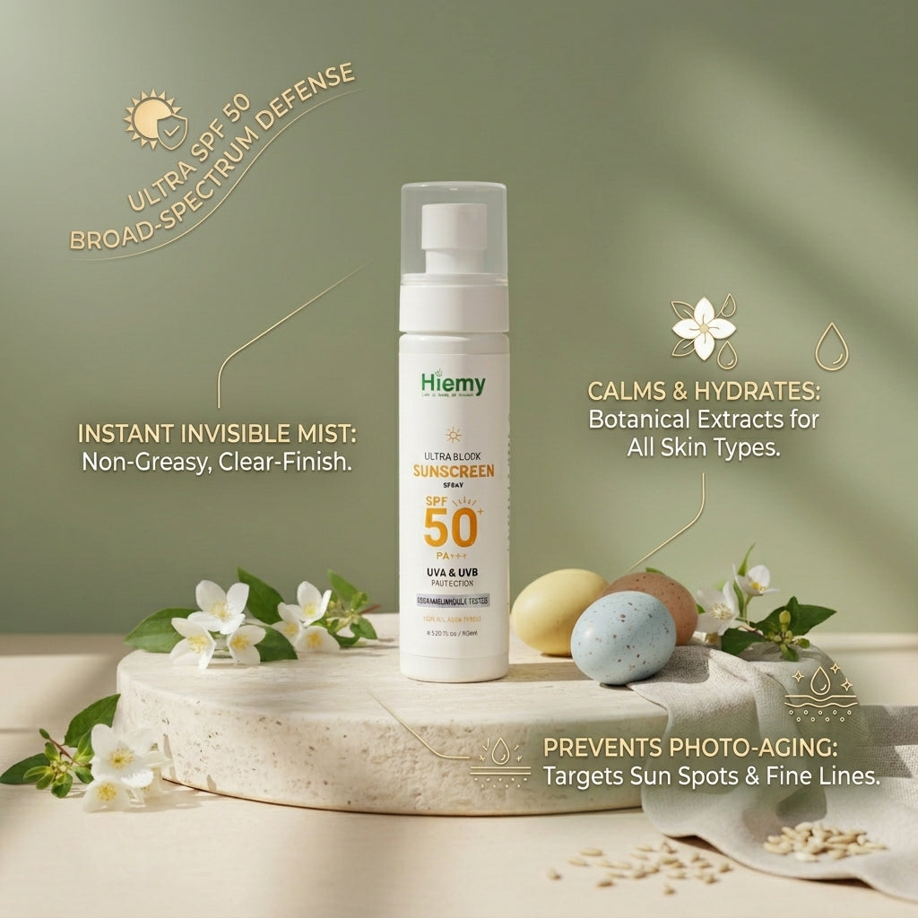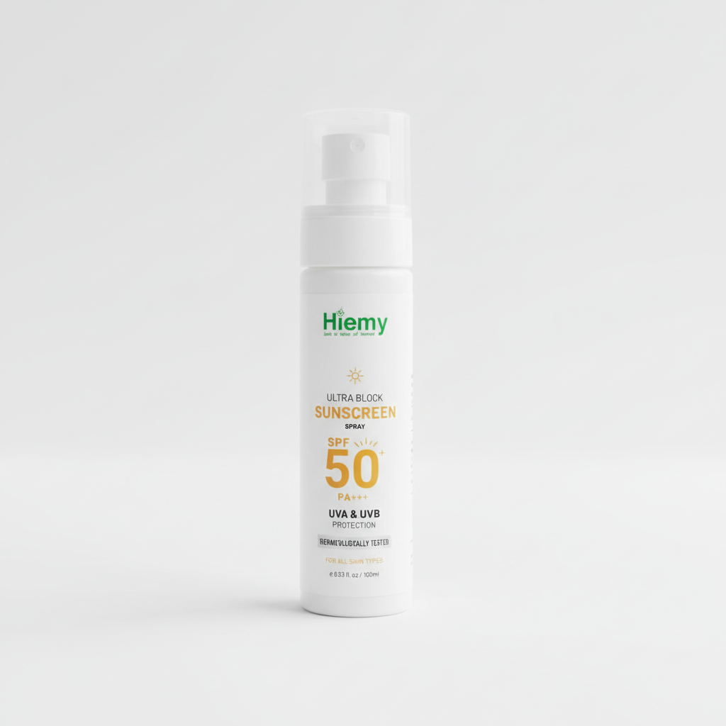 Protect your skin from harsh sun damage with Hiemy Ultra Block Sunscreen Spray — a fast-absorbing, non-greasy formula that delivers broad-spectrum UVA & UVB protection in a convenient spray format. Perfect for daily use, anytime, anywhere.